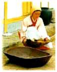 餐桌上,匙箸、饭汤的摆法都有固定的位置。如匙箸应摆在用餐者的右侧,饭摆在桌面的左侧,汤碗摆在右侧,带汤的菜肴摆在近处,不带汤的菜肴摆在其次的位置上,调味品摆在中心等。   婚丧、佳节期间不杀狗、不食狗肉。忌讳人称“鲜族”。